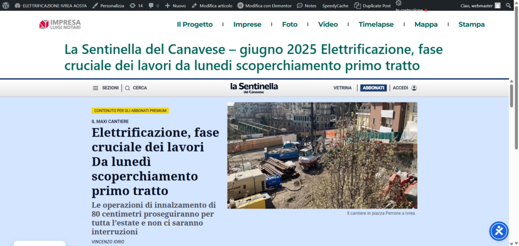 La Sentinella del Canavese – giugno 2025 Elettrificazione, fase cruciale dei lavori da lunedi scoperchiamento primo tratto
