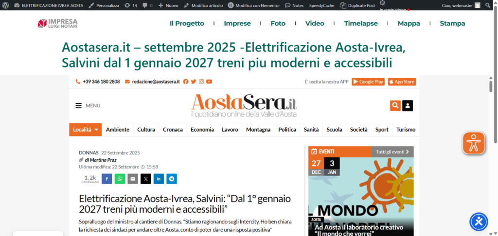Aostasera.it – settembre 2025 -Elettrificazione Aosta-Ivrea, Salvini dal 1 gennaio 2027 treni piu moderni e accessibili
