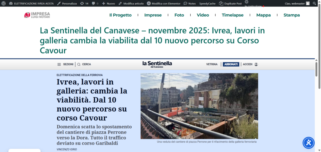 La Sentinella del Canavese – novembre 2025: Ivrea, lavori in galleria cambia la viabilita dal 10 nuovo percorso su Corso Cavour